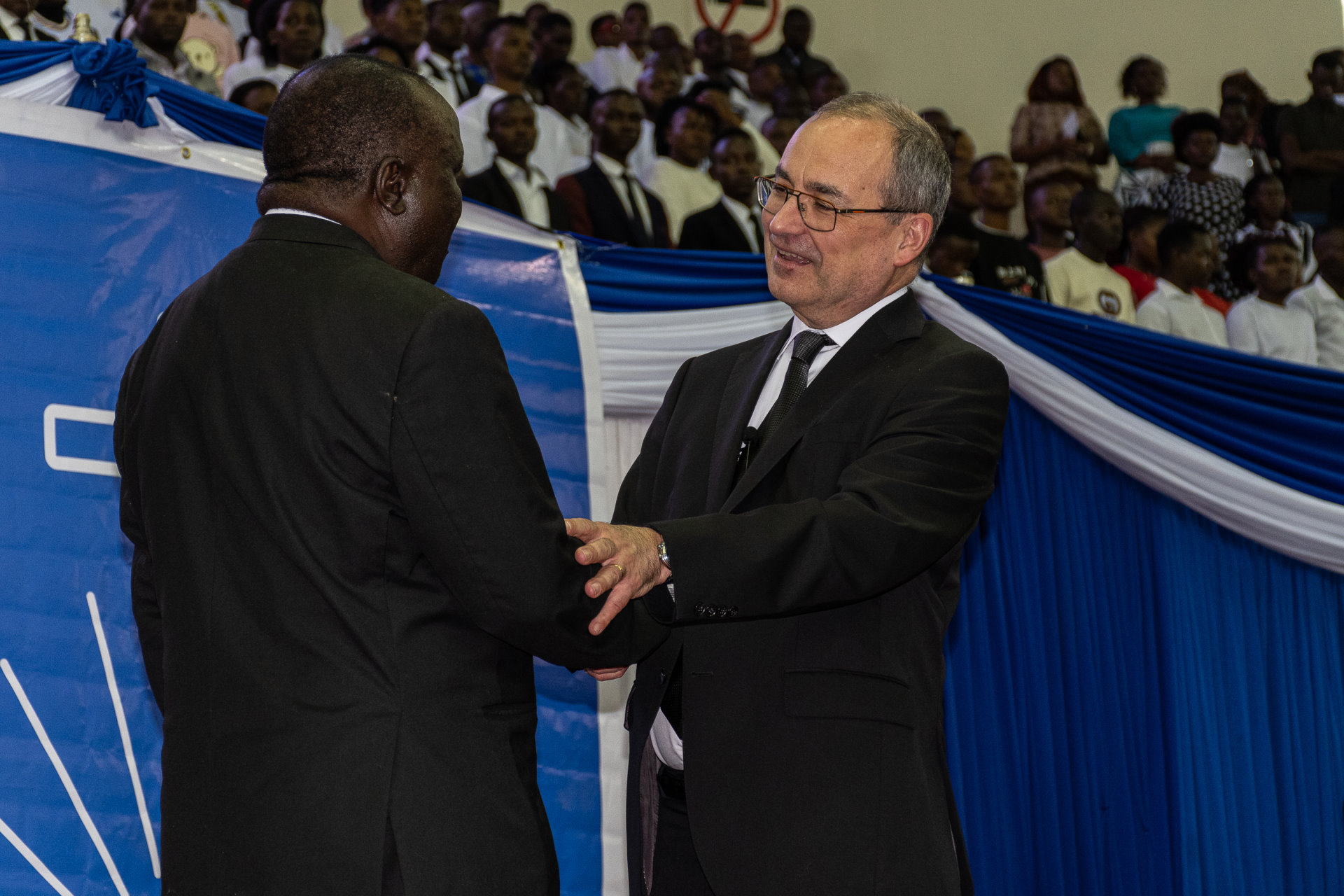 On Sunday 2nd February 2025, Chief Apostle Jean-Luc Schneider conducted a divine service in Nairobi, Kenya. The Chief Apostle was accompanied by District Apostle Stephan Poschel (West Germany), the host District Apostle Joseph Opemba Ekhuya (East Africa) and District Apostle Helper Robert Nsamba (Zambia, Zimbabwe, Malawi). All Apostles of East Africa were present. A total of 7,020 attended the divine service which was held at Moi International Sports Centre-Kasarani. The rest of the members followed the divine service at their congregations via K24 Television, East Africa TV and YouTube. Apostle Chrispin Kinyua retired after 36 years of ministry with 33 years as an Apostle. Two Apostles were ordained. Priest Hillary Mutembei Ithalii was ordained to fill the vacancy created by the retirement of Apostle Kinyua and Bishop Johnson Kyalo Musumbi was ordained to fill the vacancy that was created by the death of Apostle Jacob Nyamai which occurred in October 2024. The Chief Apostle used a bible word from Romans 6: 22